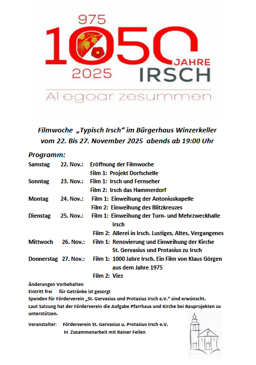 Herzliche Einladung zu allen Filmabenden. Programm siehe Flyer